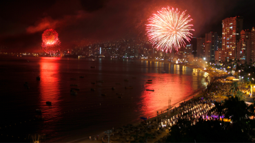 Acapulco Preparativos en Acapulco para Deslumbrante Gala de Pirotecnia en la Bahía para Recibir el Año Nuevo El año pasado, el Gobierno del Estado sorprendió a la audiencia al innovar con el uso de drones sincronizados que crearon figuras en el cielo al ritmo de la música.