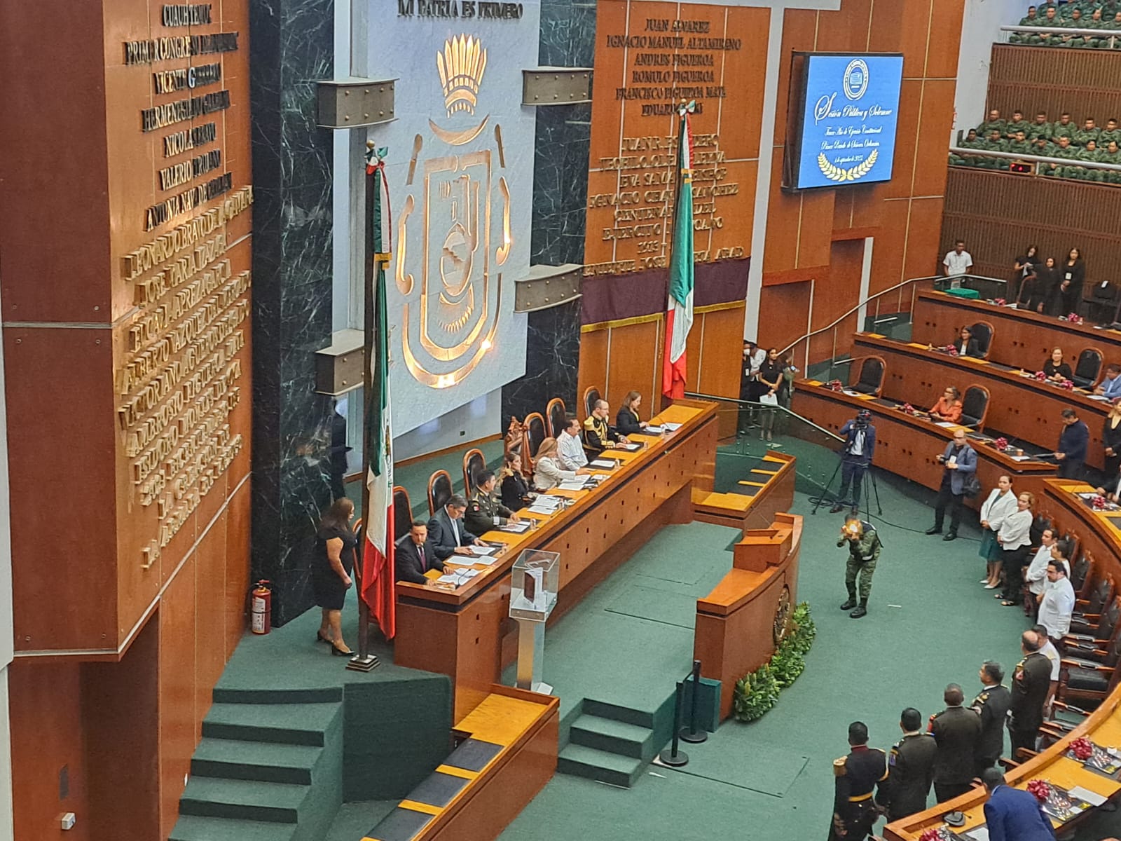 El Congreso local llevó a cabo la Sesión Pública y Solemne para la develación en el muro de honor del poder legislativo, la inscripción con letras doradas "2023, Año del Bicentenario del Heroico Colegio Militar".