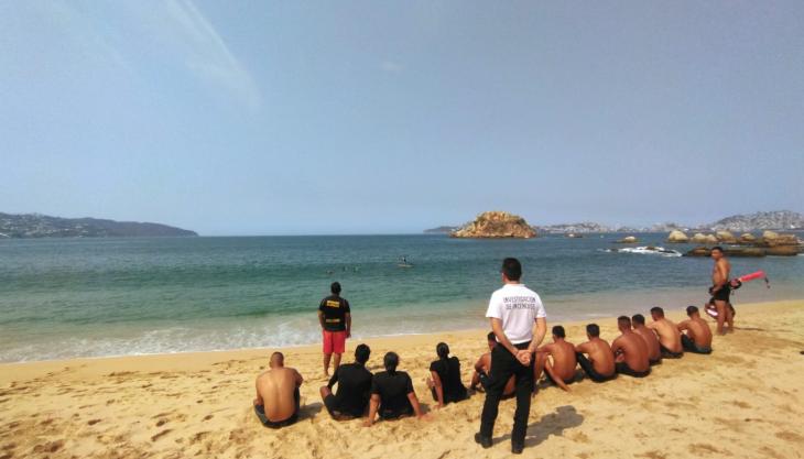 El titular de la Dirección de Bomberos de Acapulco, destacó que a solicitud de la Guardia Nacional, se llevó a cabo la primera capacitación certificada en salvamento acuático, dirigida a los primeros elementos que estarán distribuidos en la zona de playa del Acapulco Dorado, para evitar los posibles casos de inmersión por ahogamiento.